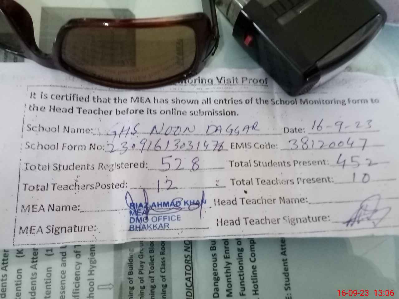 | EMIS Code: 38120047 | Name of School: GHS NOON DAGGAR | |||