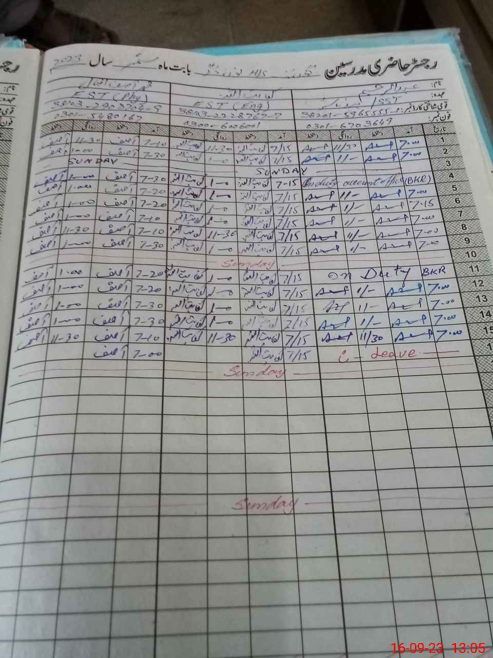 | Name: AB**** Ra**** Designation: (School Headmaster's/Headmistress's) SST Arts Phone/Cell Number: 03**** |