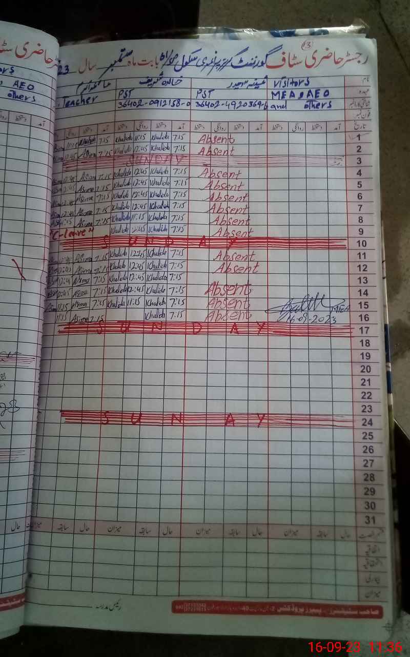 | Name: KH**** SH**** Designation: (School Headmaster's/Headmistress's) PST Phone/Cell Number: 03**** |
