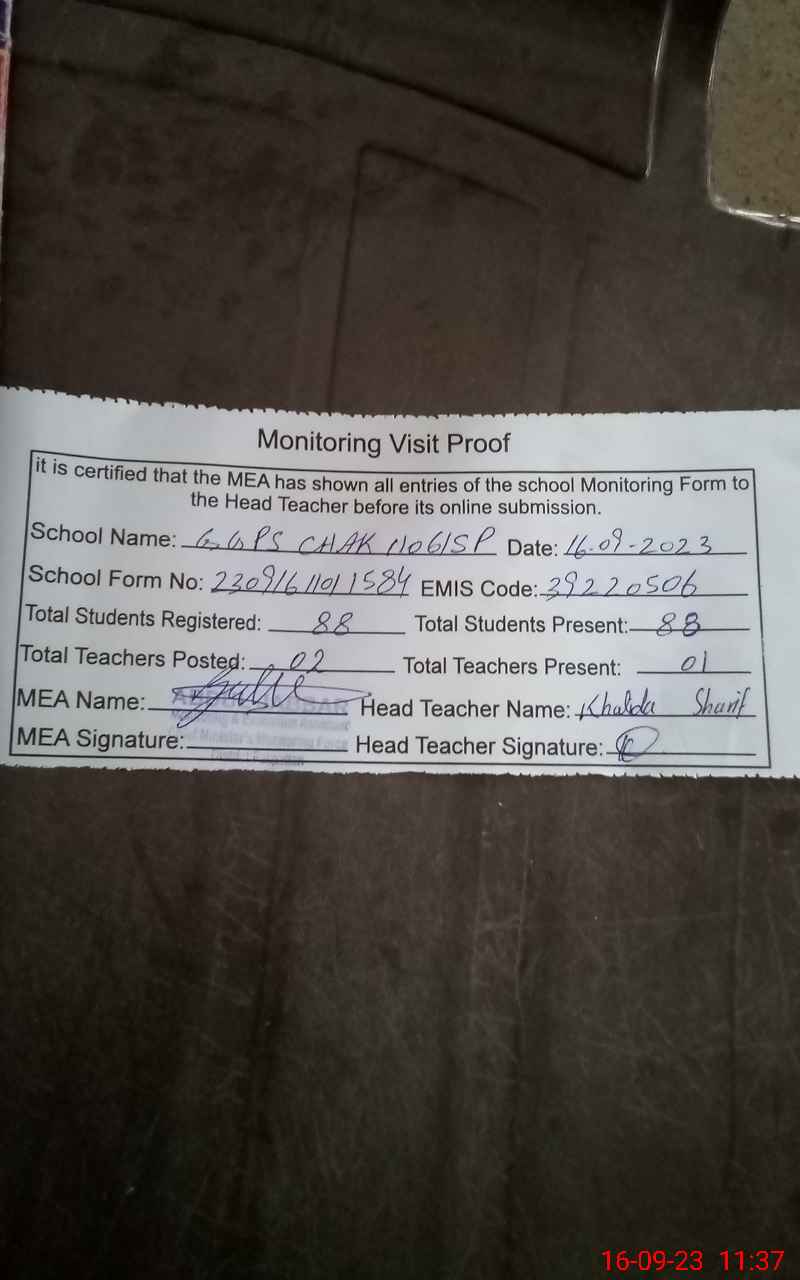 | EMIS Code: 39220506 | Name of School: GGPS CHAK NO. 61/SP | |||