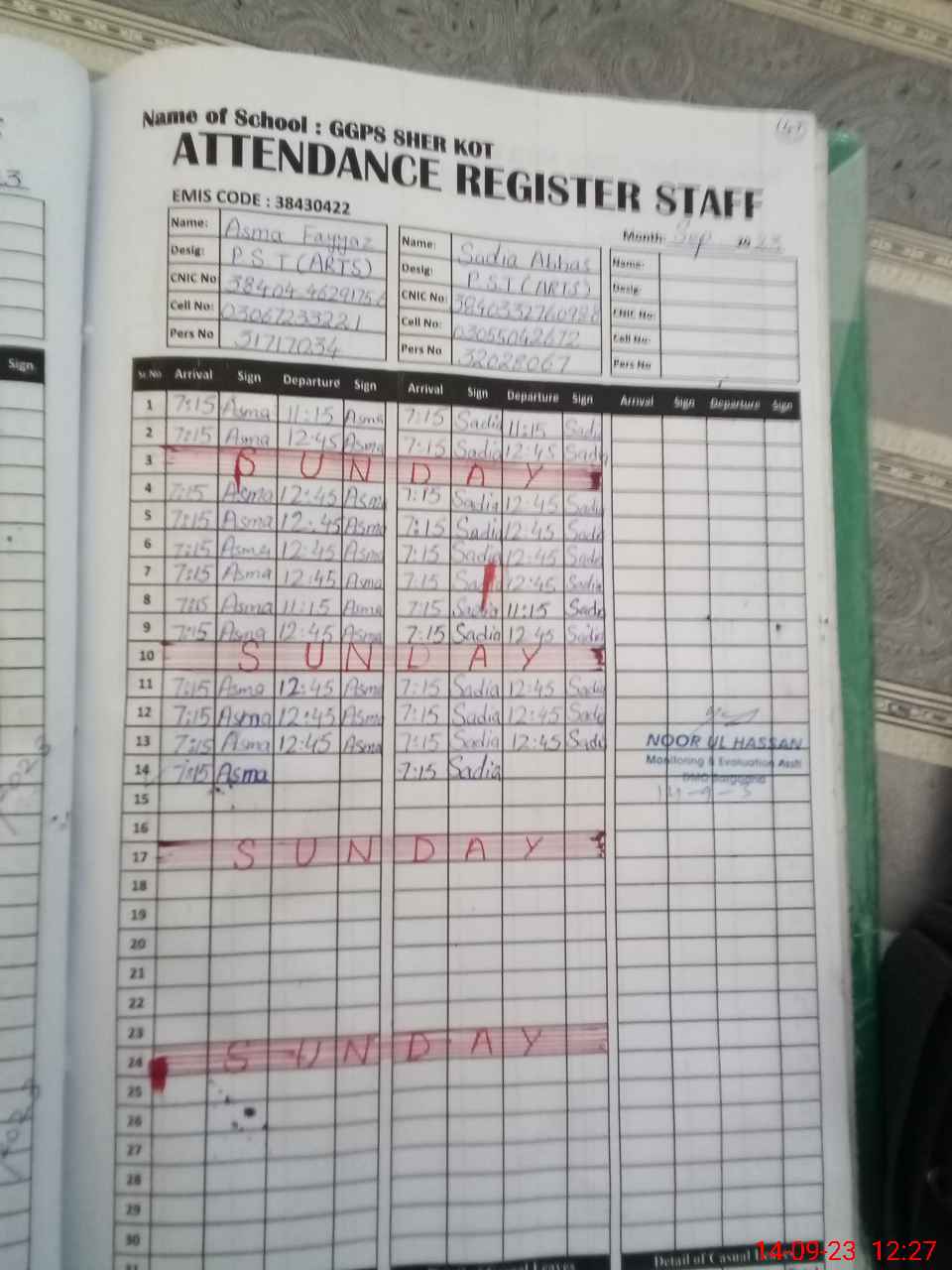 | Name: AS**** FA**** Designation: (School Headmaster's/Headmistress's) PST Phone/Cell Number: 03**** |