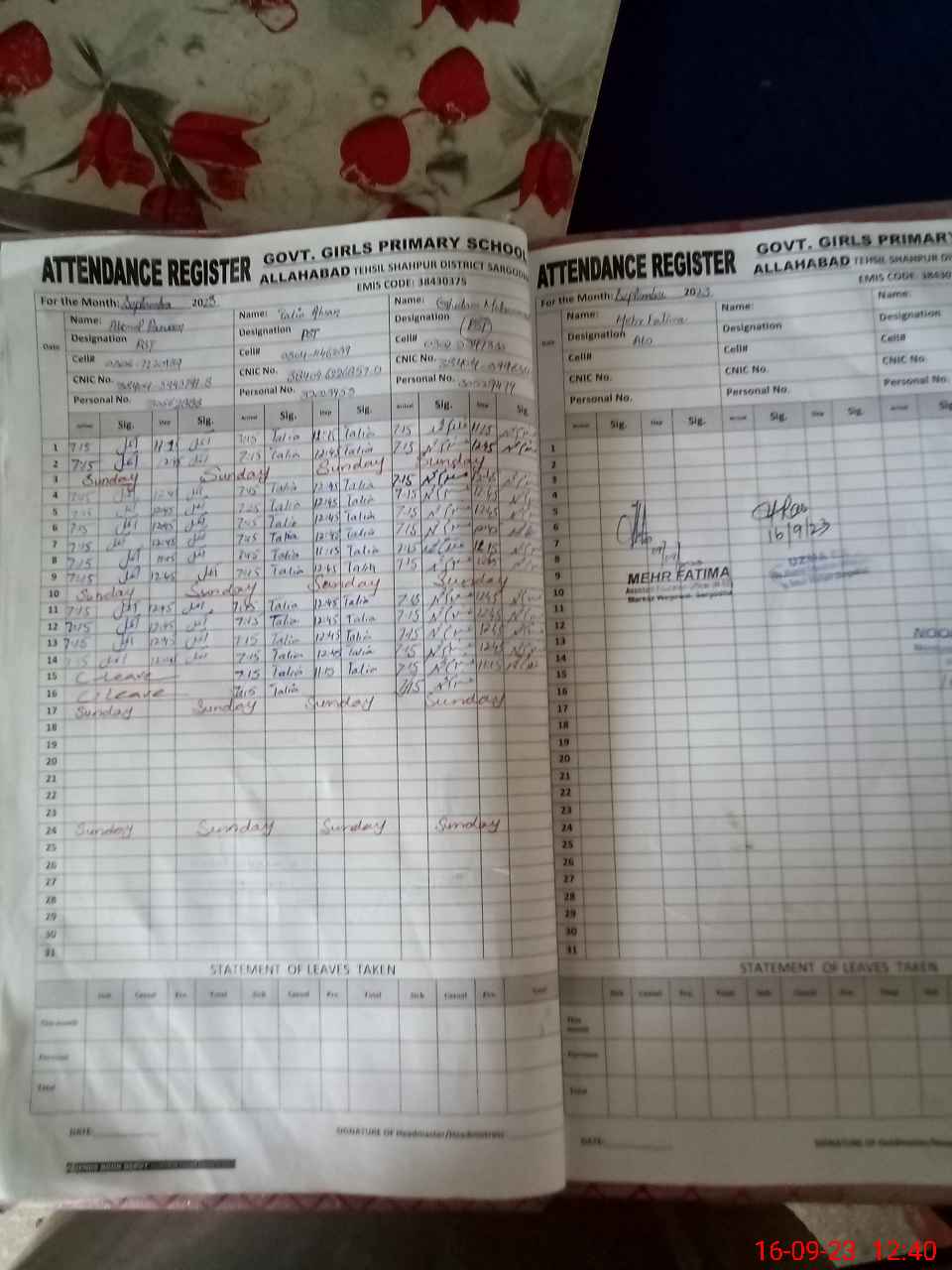 | Name: AK**** PA**** Designation: (School Headmaster's/Headmistress's) PST Phone/Cell Number: 03**** |