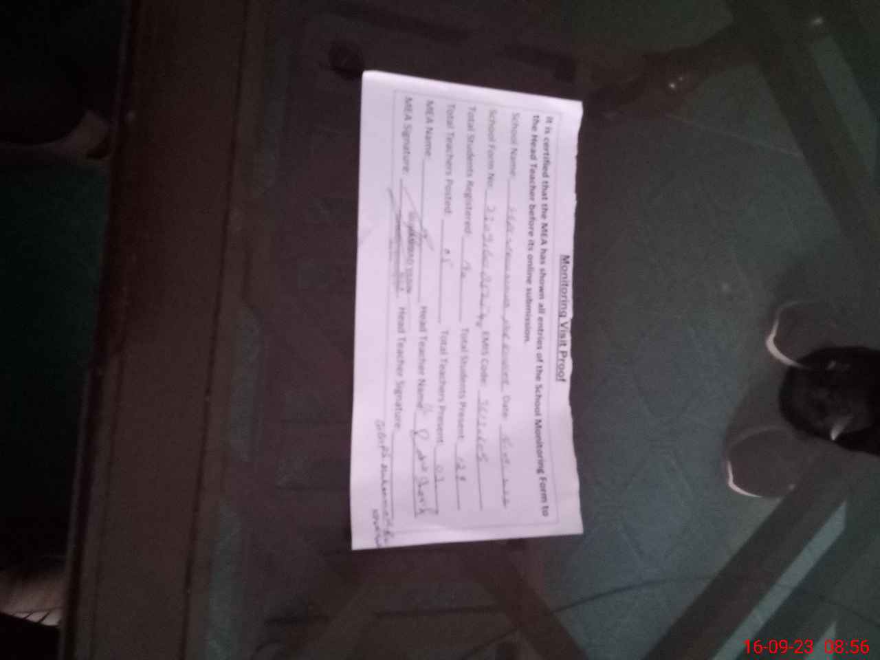 | Attendance Register | Head Teacher | MEA with School | Visit Proof |
