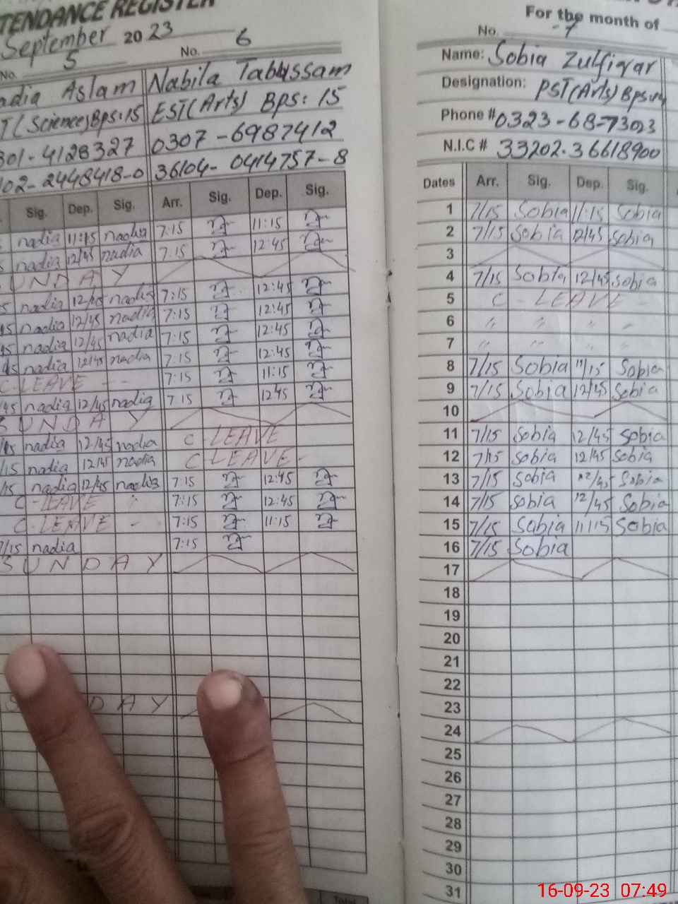 | Name: RO**** AB**** HA**** Designation: (School Headmaster's/Headmistress's) S.S.T. Arts Phone/Cell Number: 03**** |