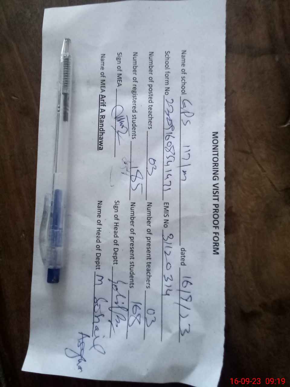 | EMIS Code: 31120314 | Name of School: GPS CHAK NO. 117/M | |||