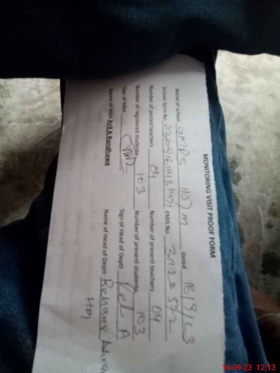 | Name: RE**** AK**** Designation: (School Headmaster's/Headmistress's) ESE SCI MATH Phone/Cell Number: 03**** |