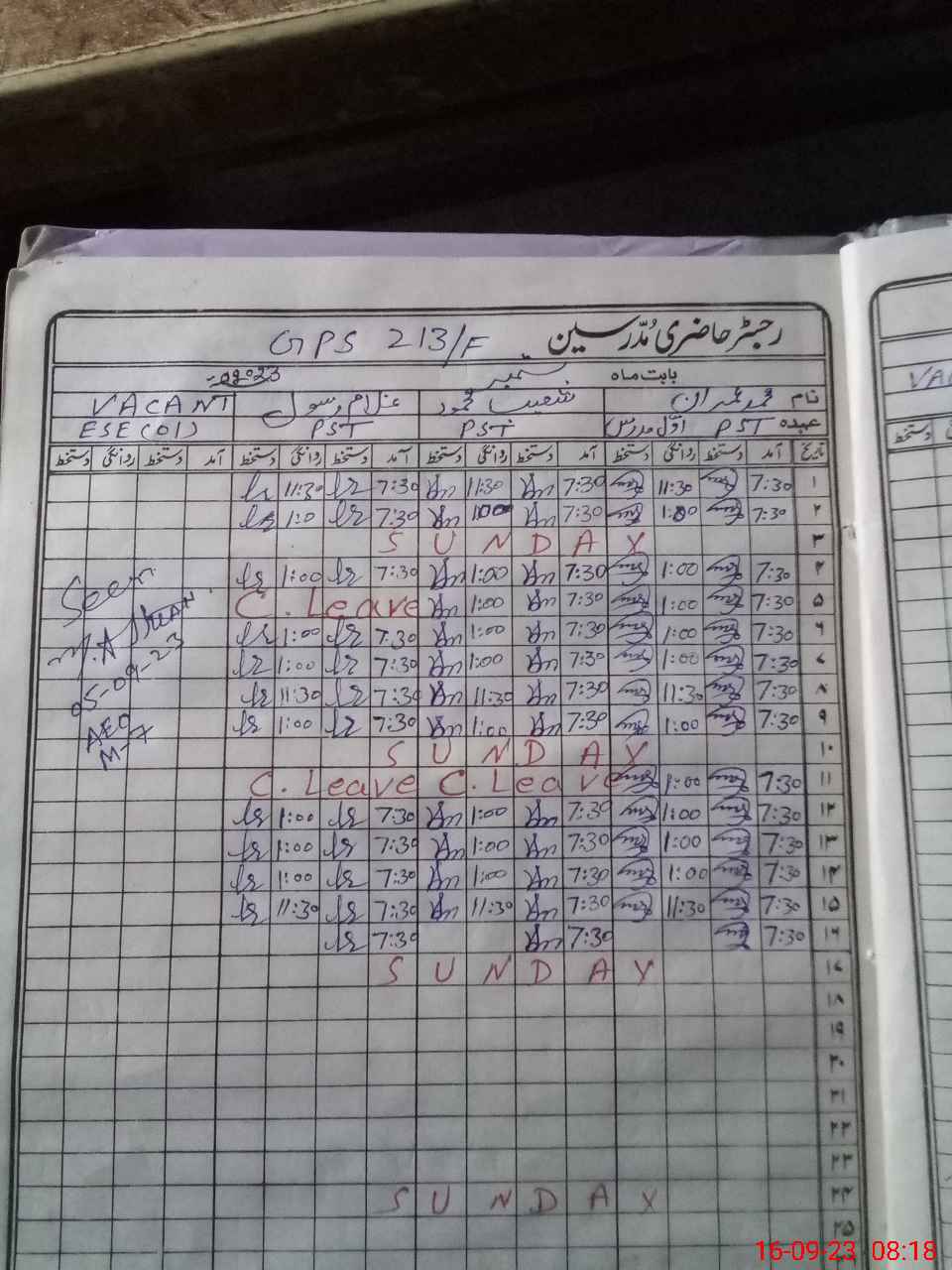 | CNIC | Full Name | Designation | R/C | Absence During Last Calender Month |