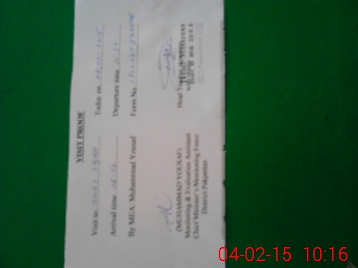 | School Visited by School Health & Nutrition Supervisor (No. of Visits) | 1 | Name1: | Hafiz Tauqeer | Name2: | |