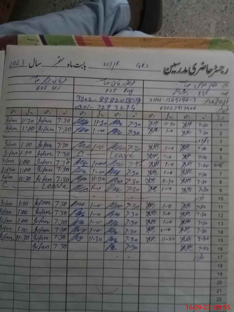 | Name: GH**** AB**** Designation: (School Headmaster's/Headmistress's) SST GENERAL Phone/Cell Number: 03**** |
