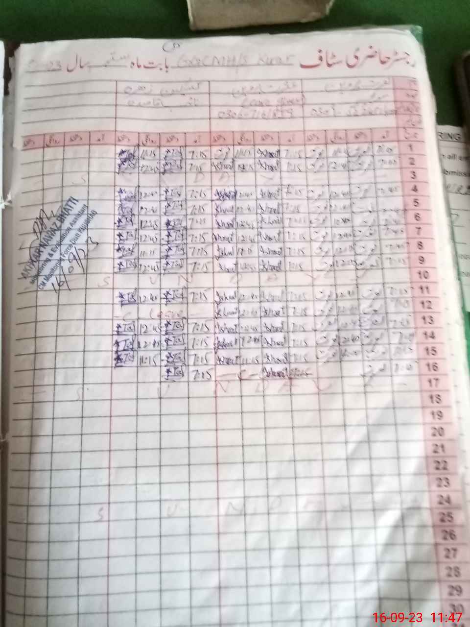 | 38**** | Fa**** Za**** | 4 | 2 | 0 | 0 | 0 | 0 | 0 | 0 | 0 | 0 | 0 | Exam Duty |