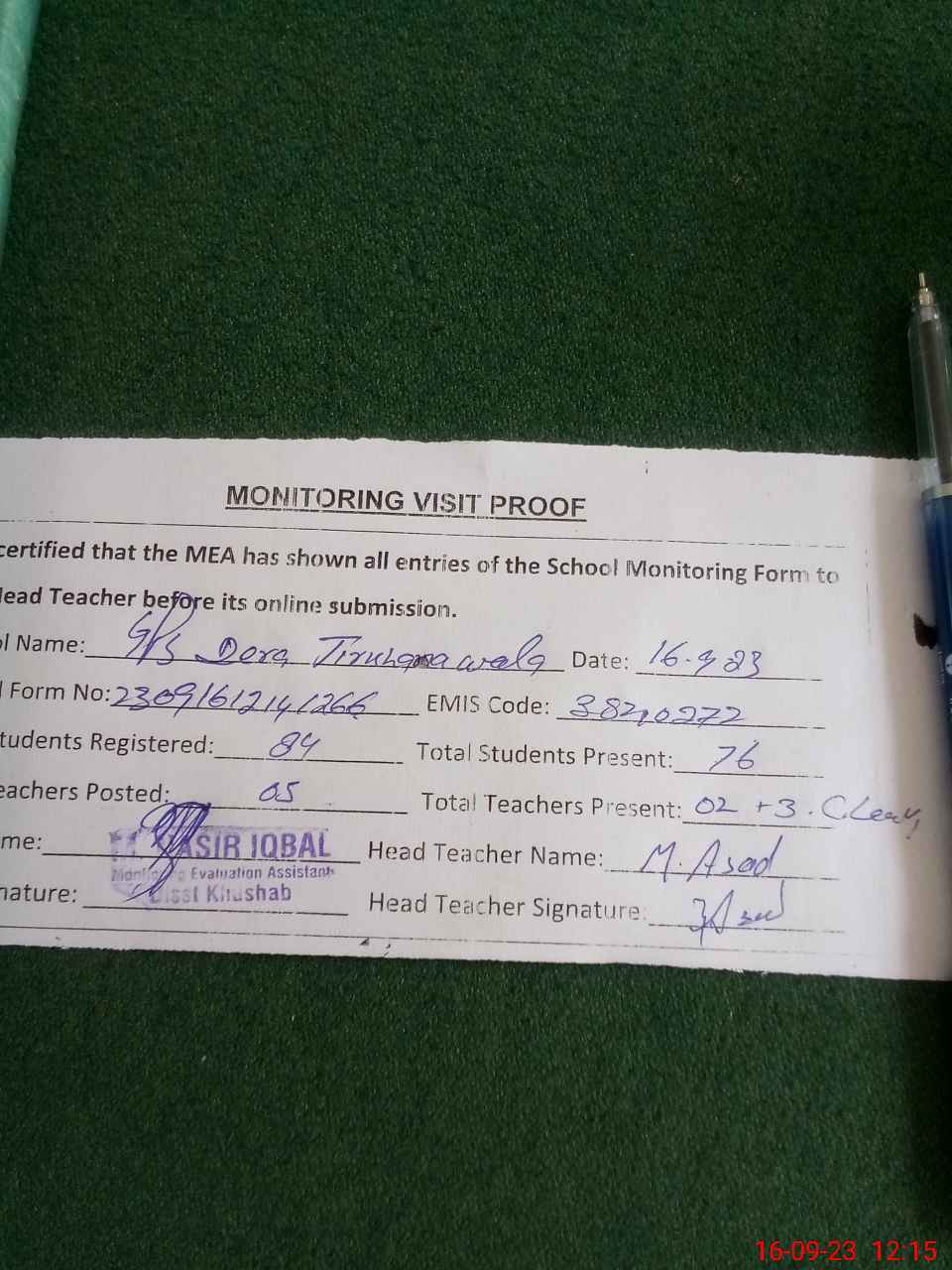 | EMIS Code: 38210272 | Name of School: GPS DERA TIRKHANAN WALA | |||