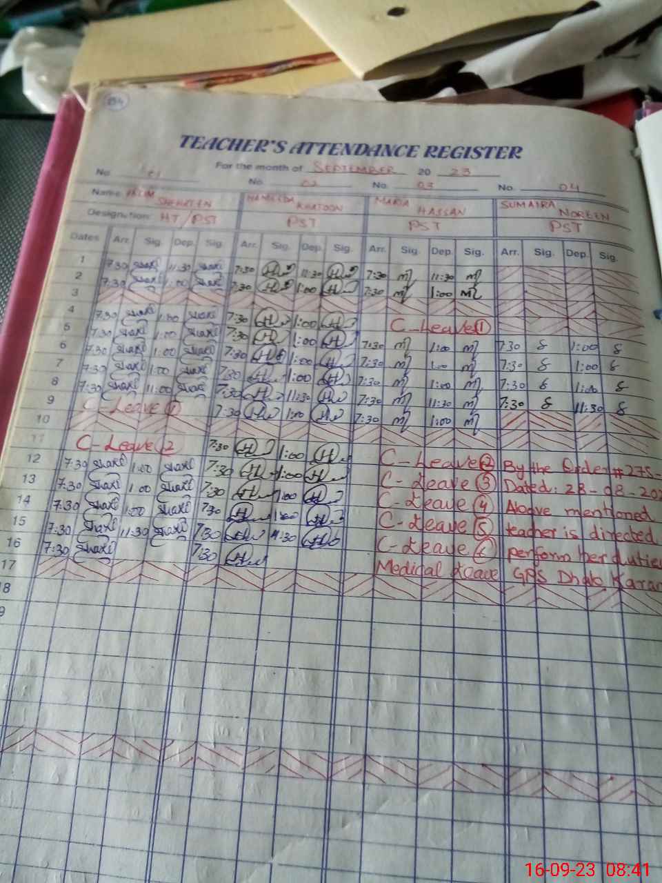 | Name: Ir**** Sh**** Designation: (School Headmaster's/Headmistress's) PST Phone/Cell Number: 03**** |