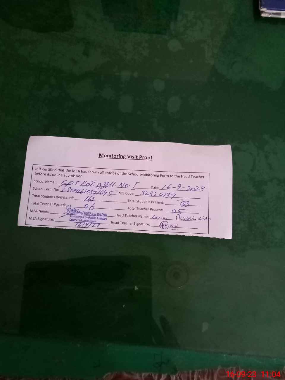 | EMIS Code: 32320139 | Name of School: GPS KOT ADU NO. 1 | |||