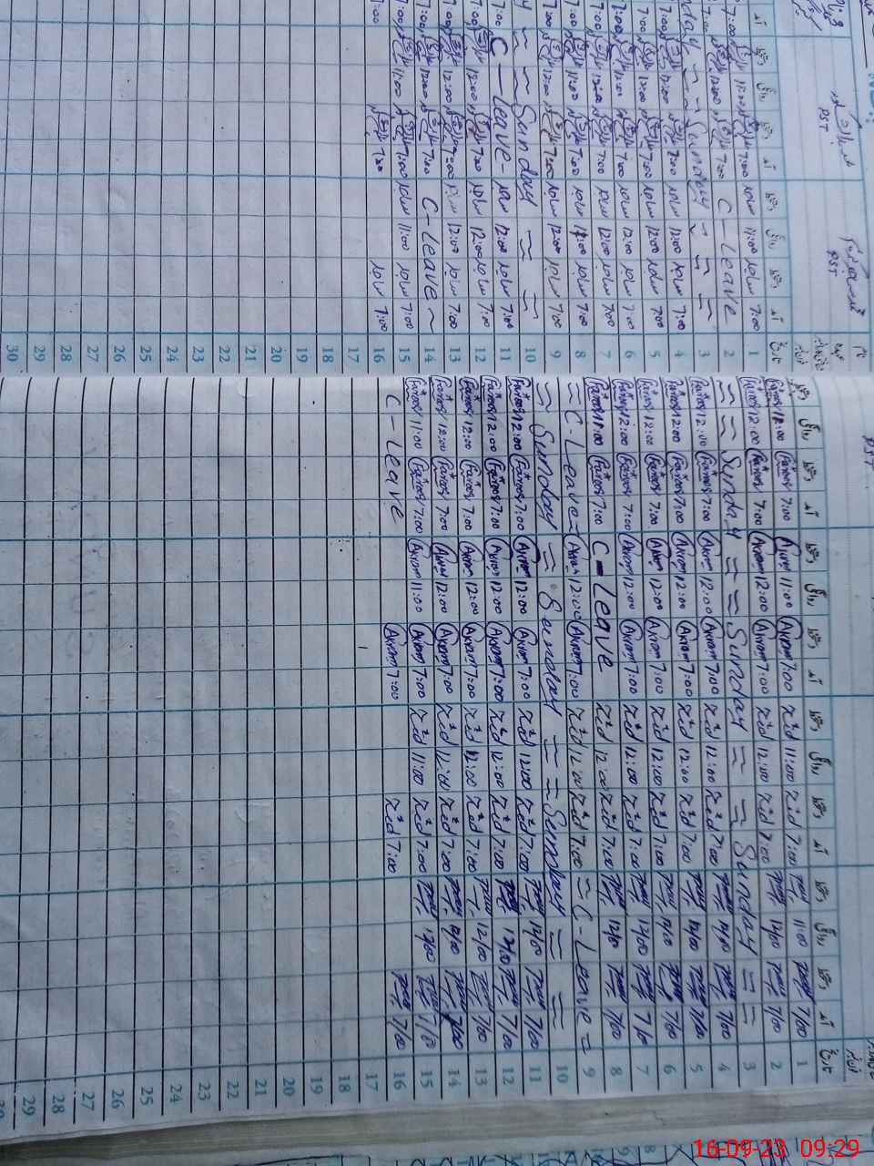 | CNIC | Full Name | Designation | R/C | Absence During Last Calender Month |