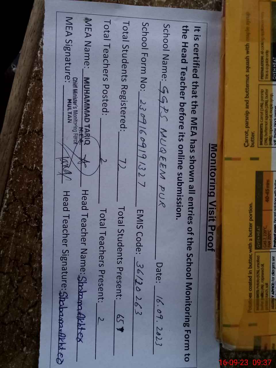 | EMIS Code: 36120263 | Name of School: GGPS MUQEEM PUR SHUJABAD | |||