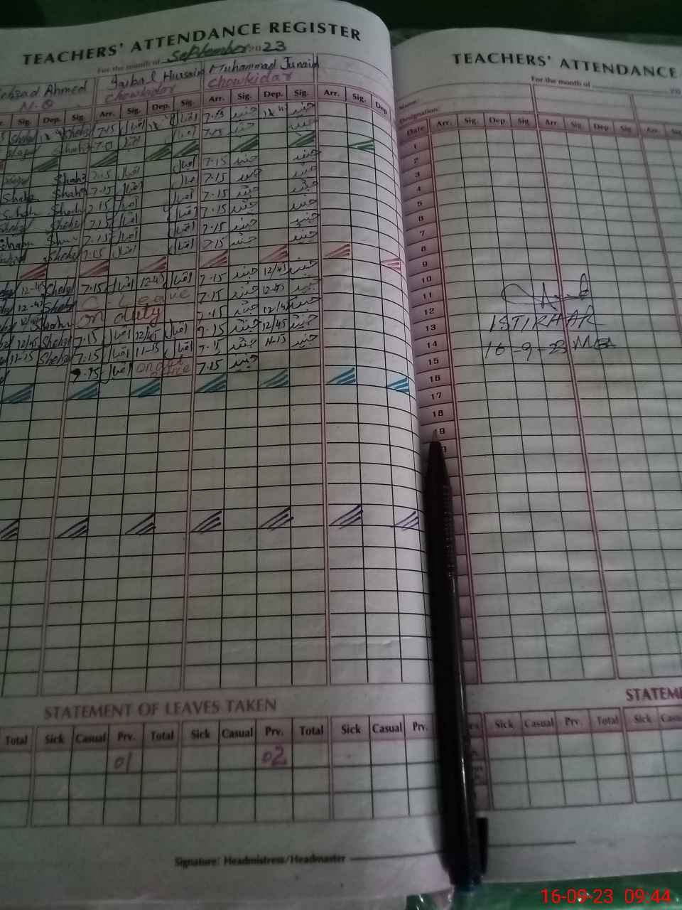| Attendance Register | Head Teacher | MEA with School | Visit Proof |
