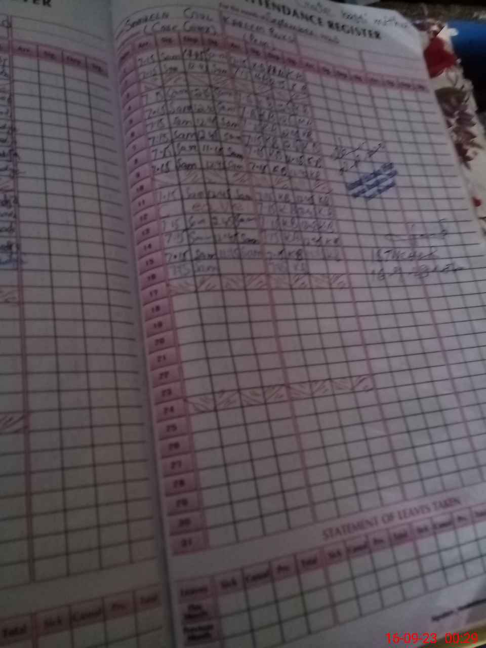 | Leave | Duty | Absent | Maternity | Medical | Ex- Pak |