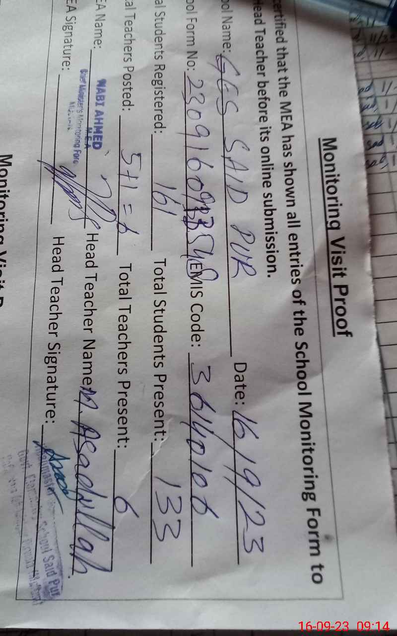 | EMIS Code: 36140106 | Name of School: GES SAID PUR HAFIZ WALA | |||