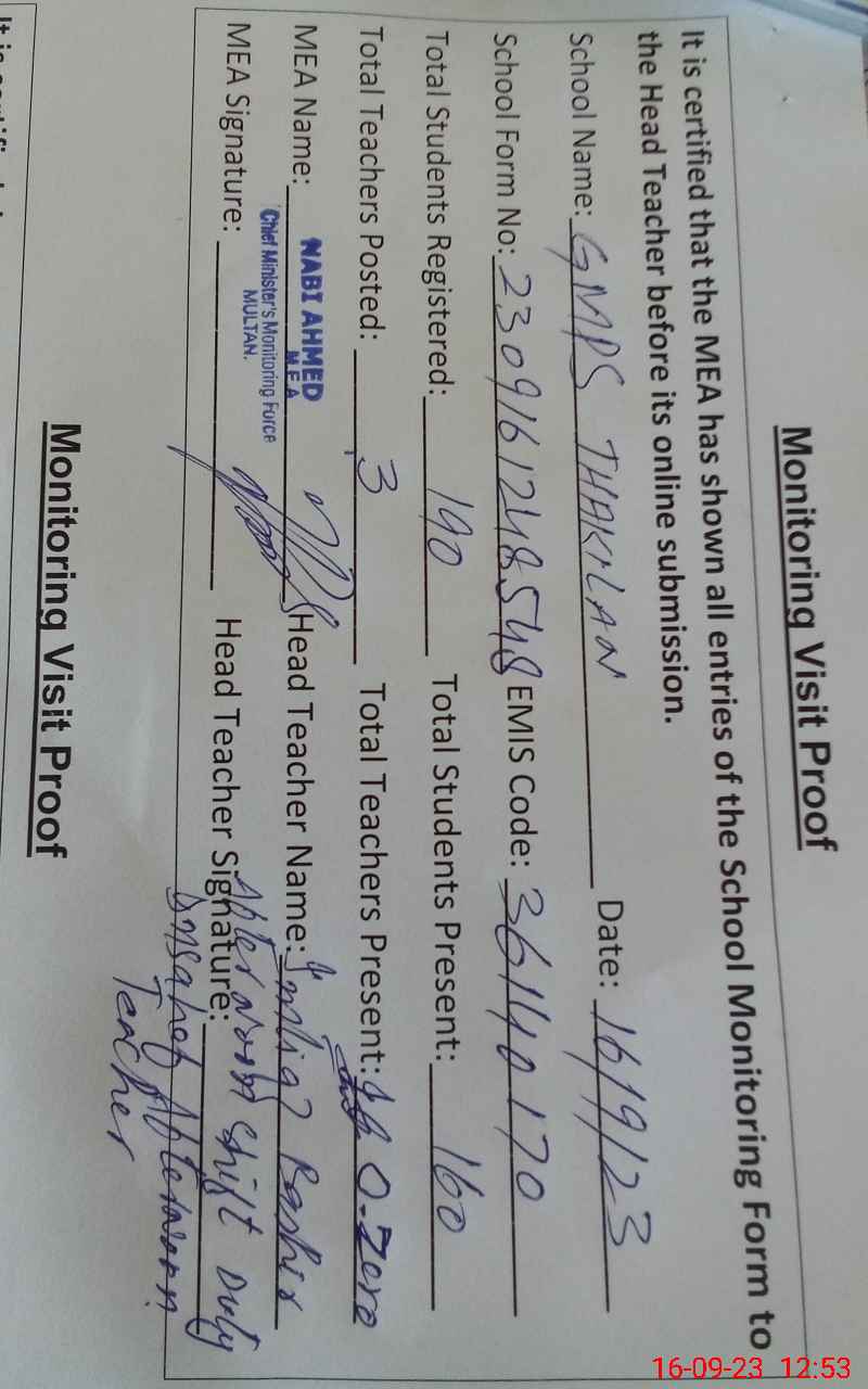| EMIS Code: 36140170 | Name of School: GMPS THAKLAN JALALPUR PIRWALA | |||