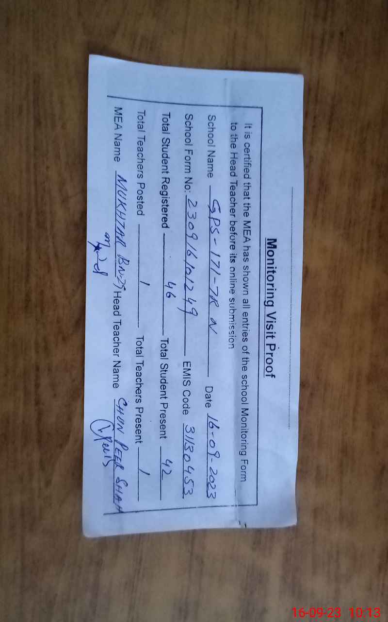 | EMIS Code: 31130453 | Name of School: GPS CHAK NO 171/7-R N | |||