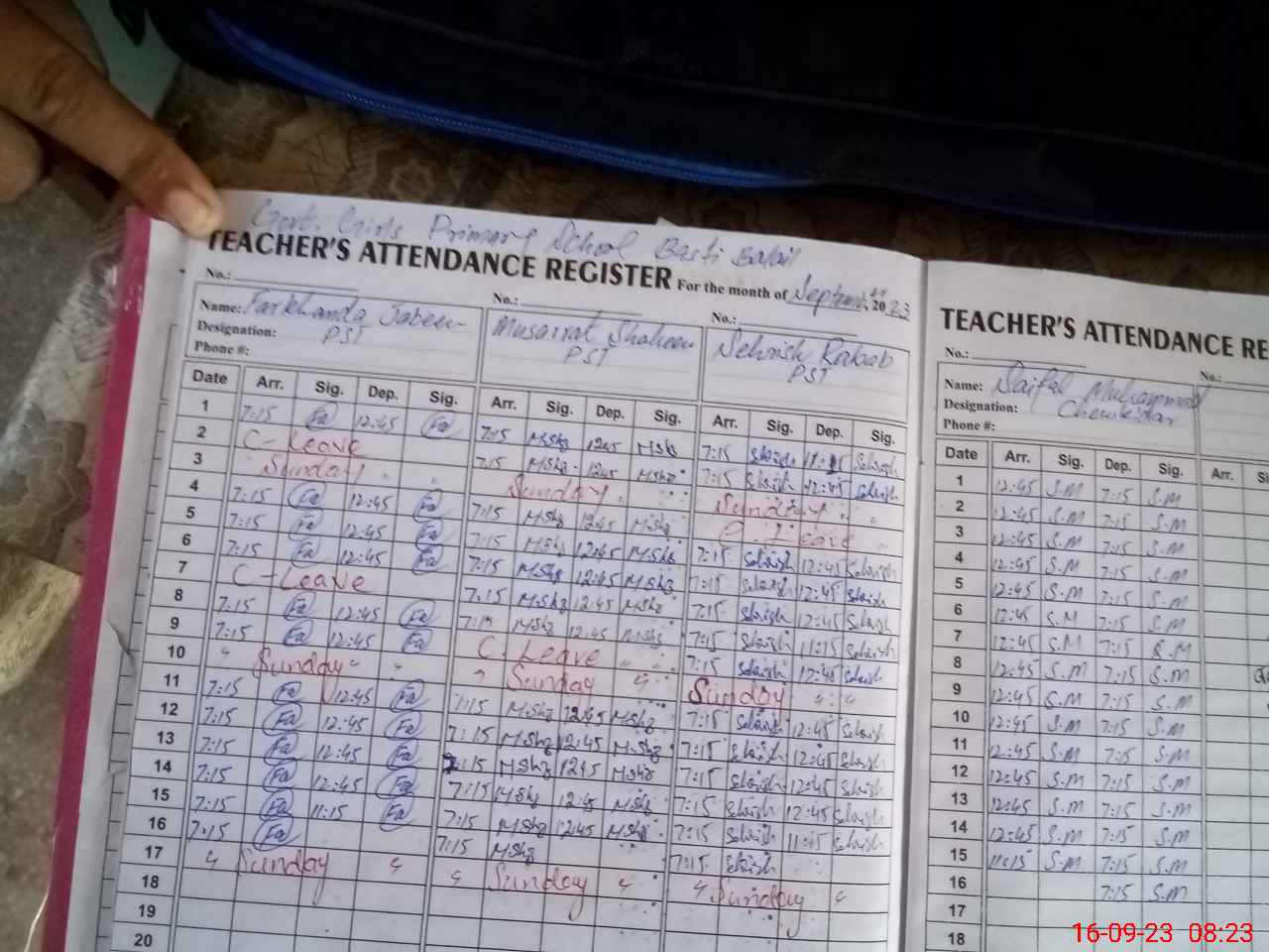 | CNIC | Full Name | Designation | R/C | Absence During Last Calender Month |