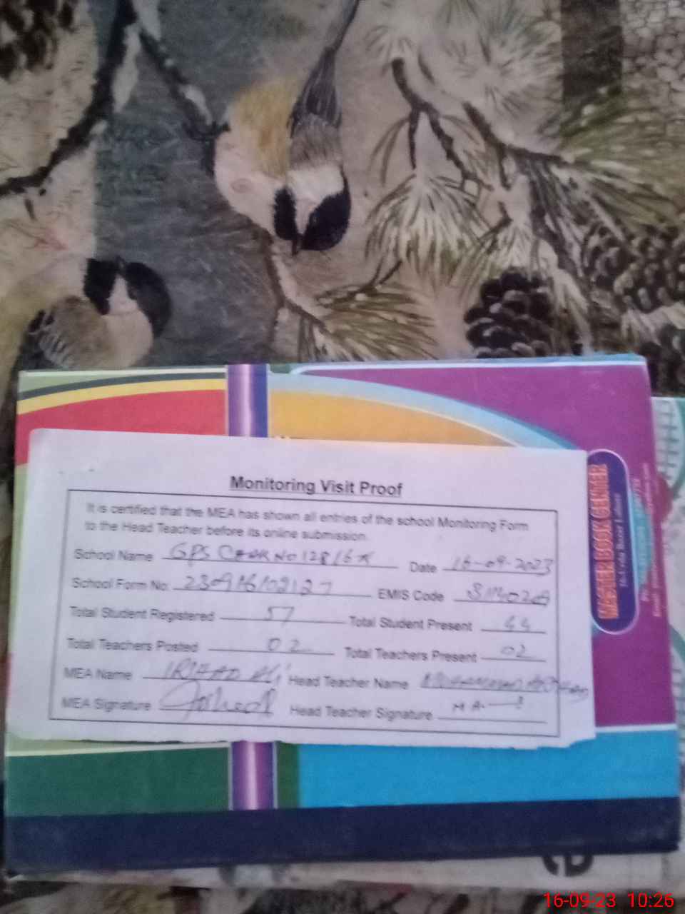 | Attendance Register | Head Teacher | MEA with School | Visit Proof |