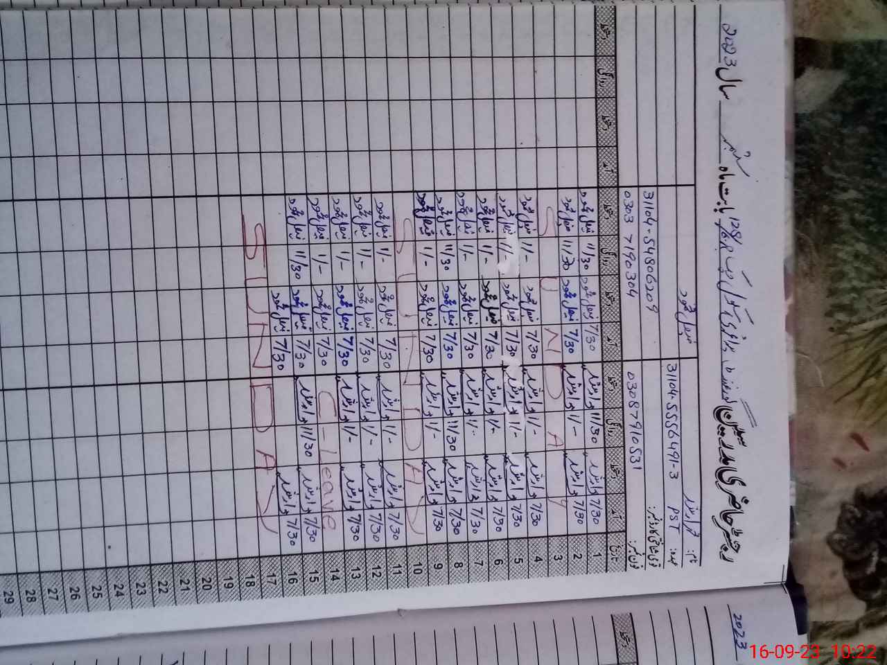 | CNIC | Full Name | Designation | R/C | Absence During Last Calender Month |