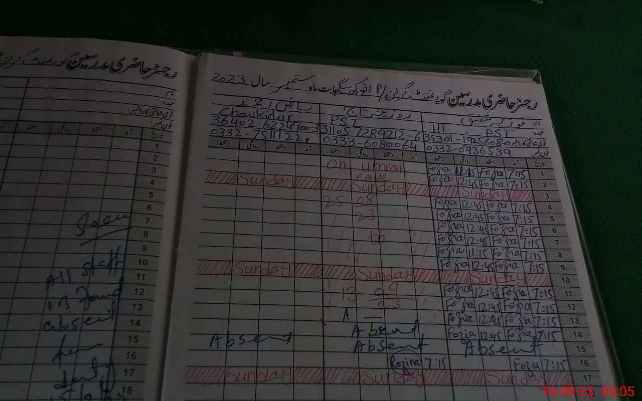 | CNIC | Full Name | Designation | R/C | Absence During Last Calender Month |