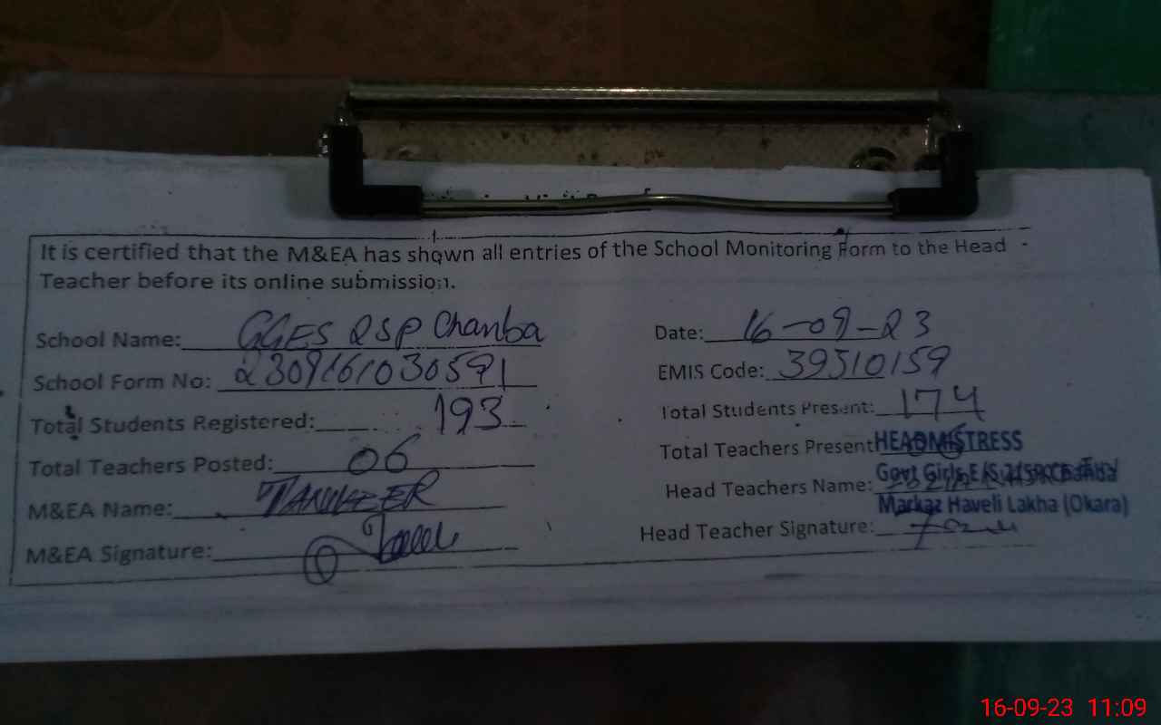 | Certified that this School was Inspected by the Undersigned MEA/DMO Today and the Information Stated Above is as Per Record. | |||||