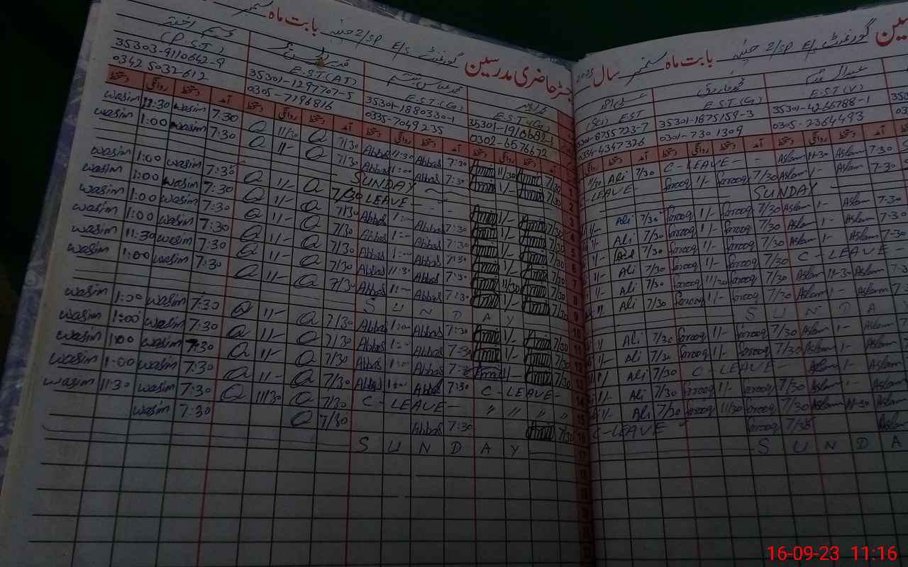 | CNIC | Full Name | Designation | R/C | Absence During Last Calender Month |