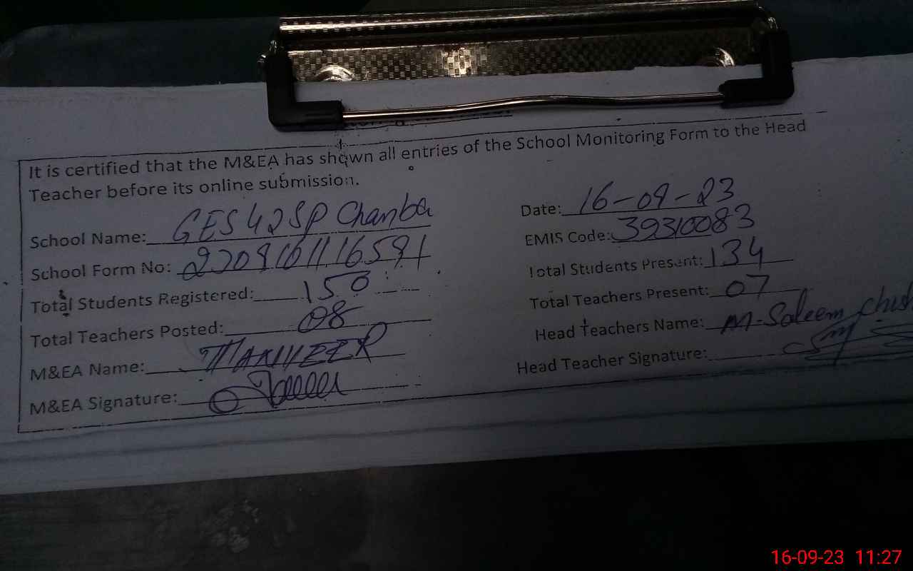 | Attendance Register | Head Teacher | MEA with School | Visit Proof |