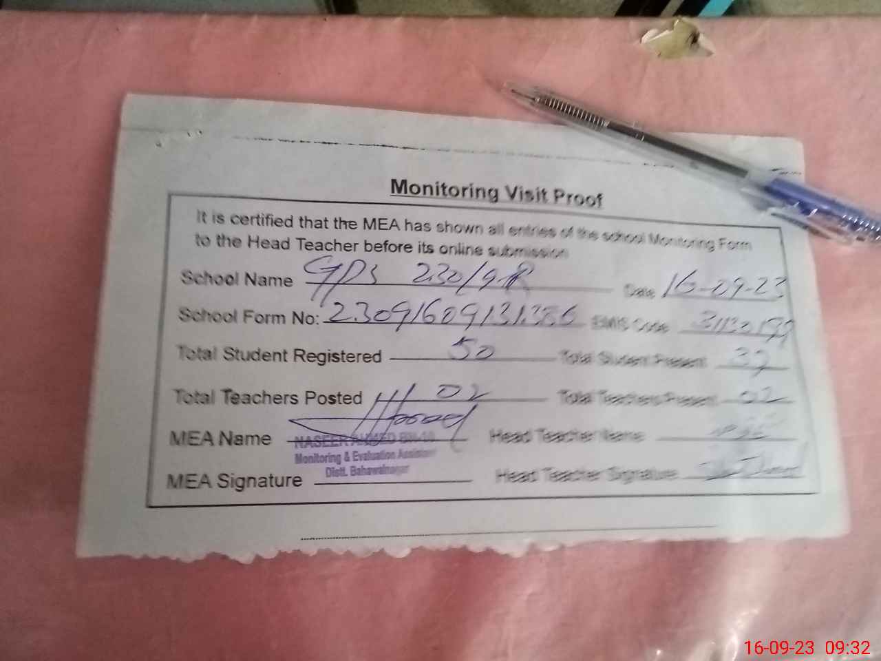 | EMIS Code: 31130199 | Name of School: GPS CHAK 230/9-R | |||