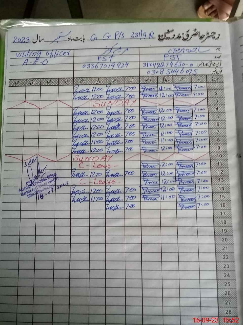 | Name: SA**** PE**** Designation: (School Headmaster's/Headmistress's) PTC/JV Phone/Cell Number: 03**** |