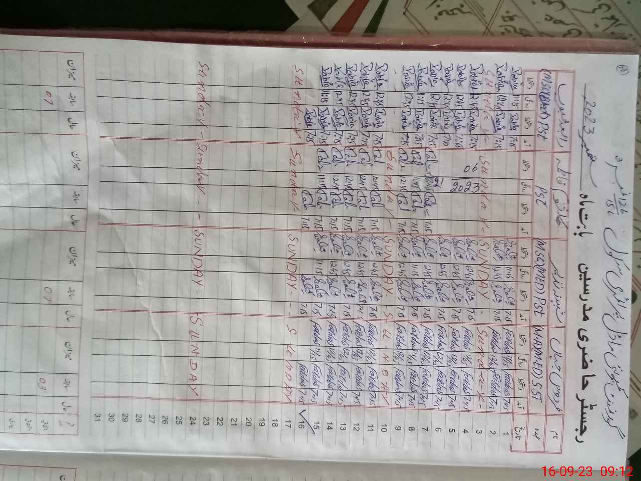 | Monitoring Date: 16-09-2023 | Start Time: 16-09-2023 07:55 AM | End Time: 16-09-2023 09:18 AM | Name of MEA: Mu**** Ja**** | |