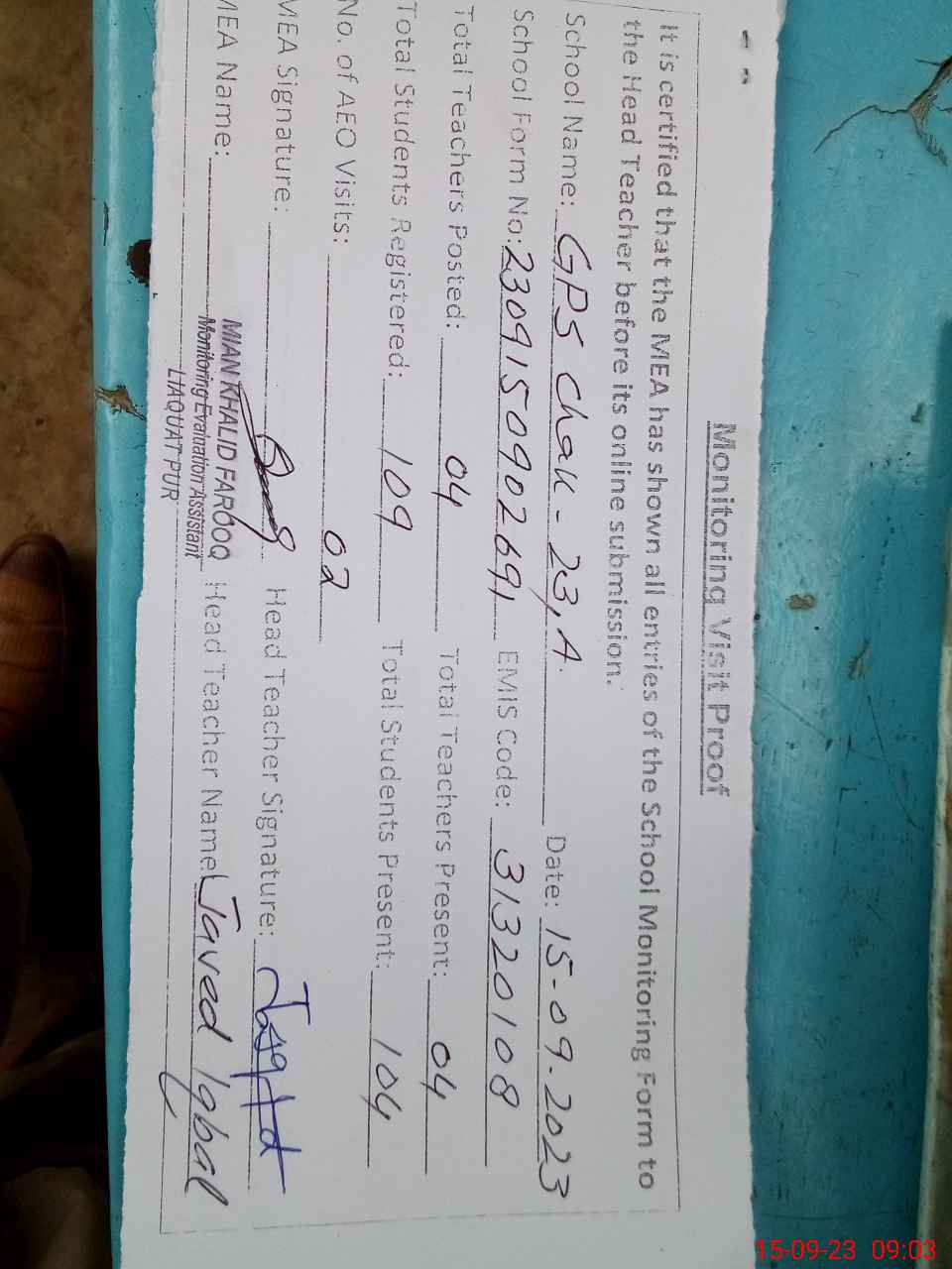 | EMIS Code: 31320108 | Name of School: GPS CHAK 23 A | |||