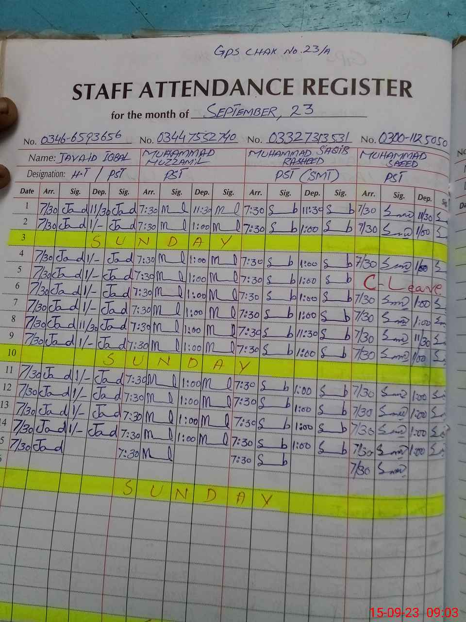 | Name: JA**** IQ**** Designation: (School Headmaster's/Headmistress's) PST Phone/Cell Number: 03**** |