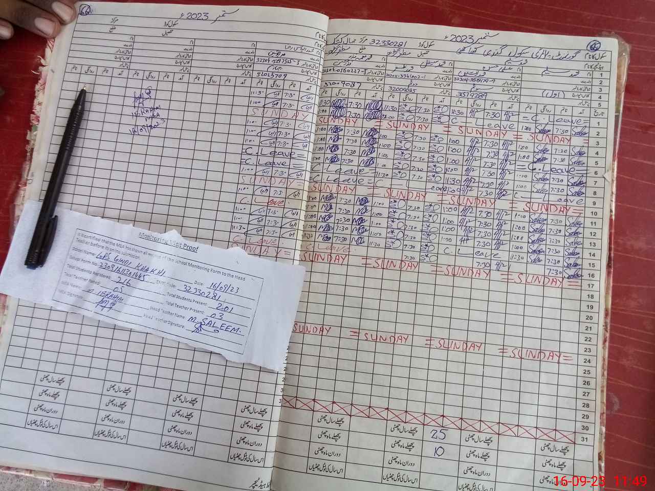 | Attendance Register | Head Teacher | MEA with School | Visit Proof |