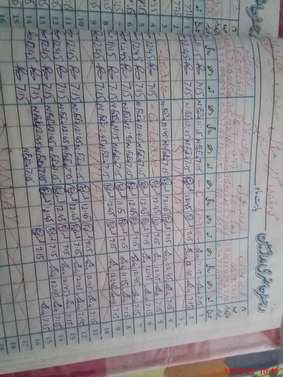 | CNIC | Full Name | Designation | R/C | Absence During Last Calender Month |