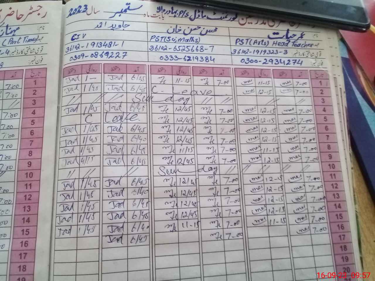 | Name: Um**** Ha**** Designation: (School Headmaster's/Headmistress's) PST Phone/Cell Number: 03**** |