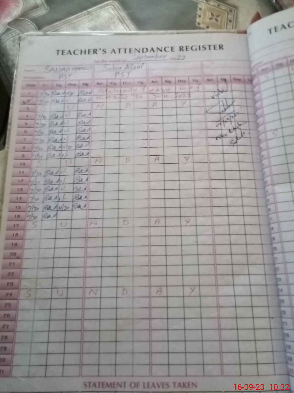 | Name: SA**** AH**** Designation: (School Headmaster's/Headmistress's) PST Phone/Cell Number: 03**** |