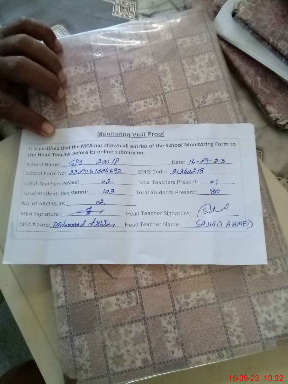 | EMIS Code: 31340218 | Name of School: GPS CHAK NO 200/P | |||