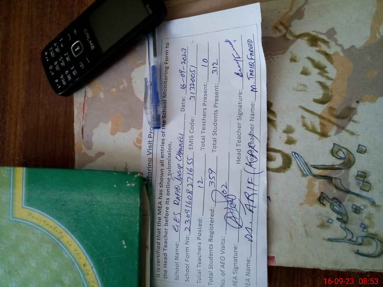 | Attendance Register | Head Teacher | MEA with School | Visit Proof |