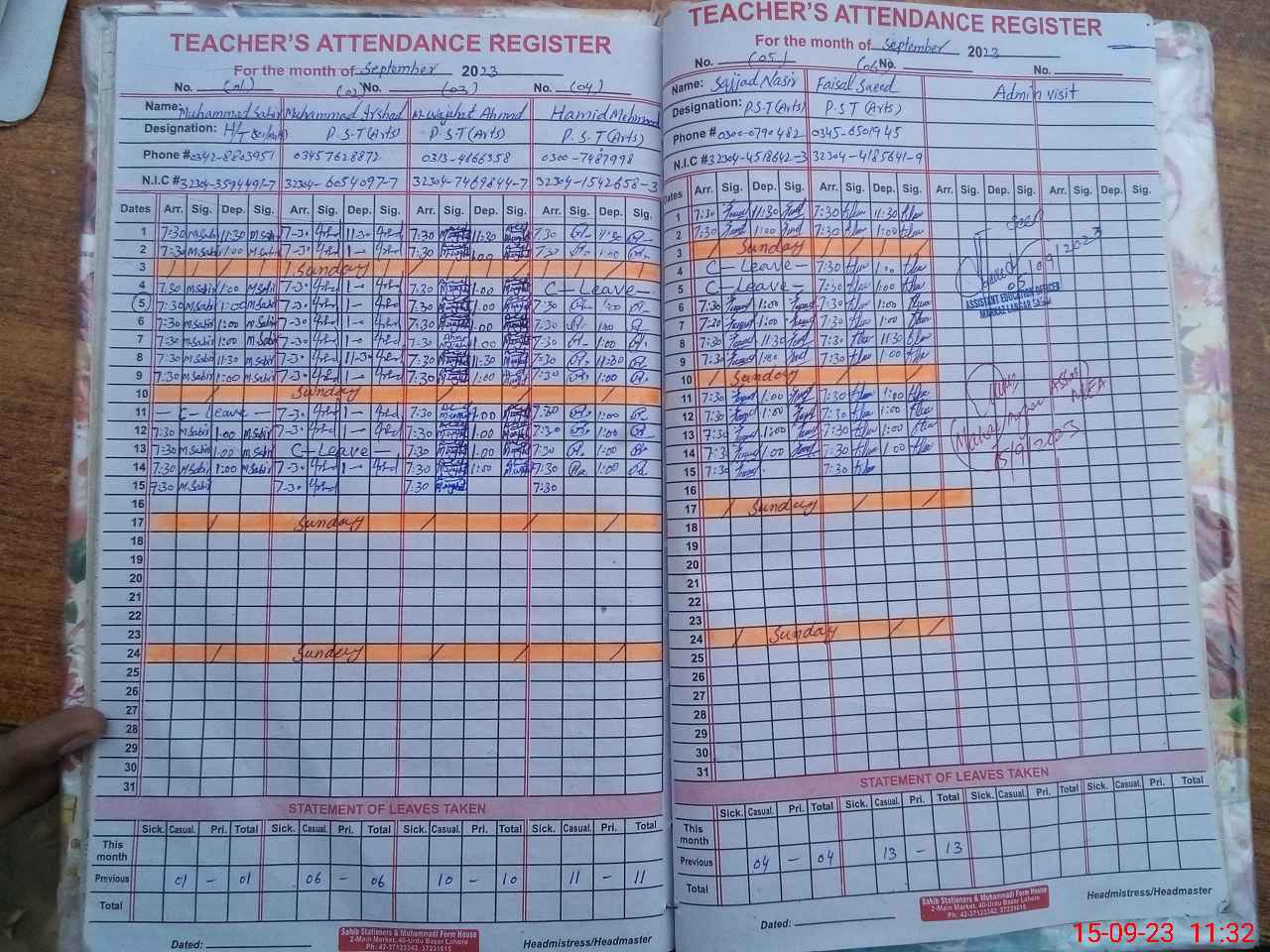 | CNIC | Full Name | Designation | R/C | Absence During Last Calender Month |