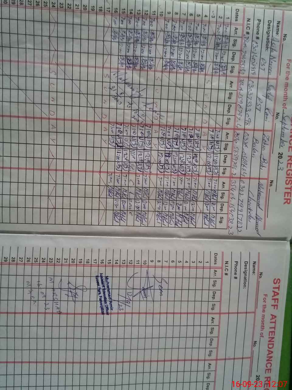 | Name: FA**** JA**** Designation: (School Headmaster's/Headmistress's) SST (General) Phone/Cell Number: 03**** |