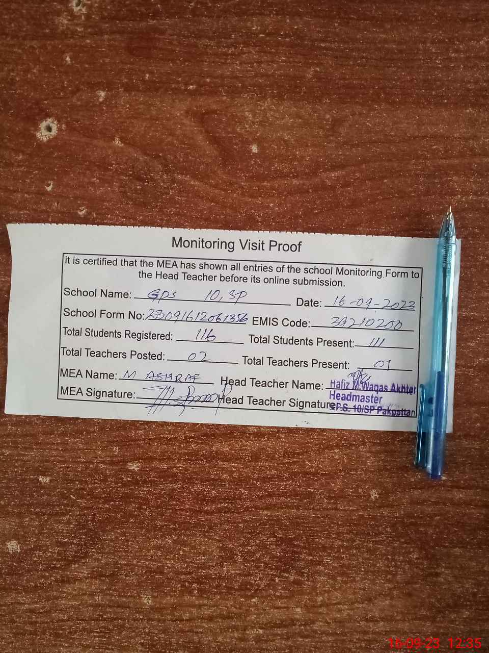 | EMIS Code: 39210200 | Name of School: GPS 10 SP PAKPATTAN | |||