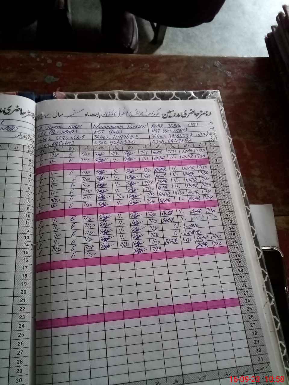 | Name: AM**** IQ**** Designation: (School Headmaster's/Headmistress's) PST Phone/Cell Number: 03**** |