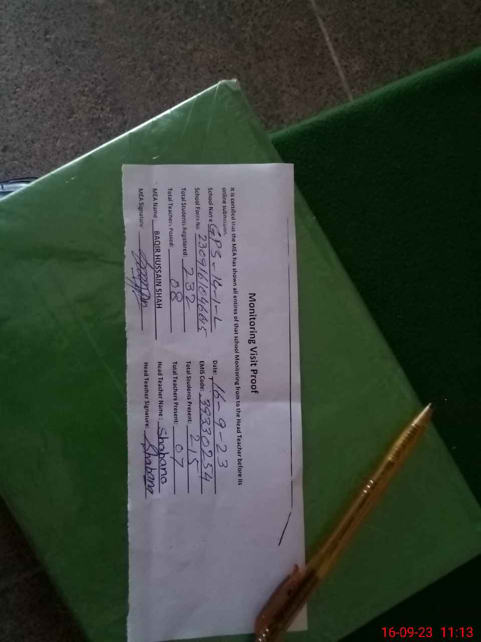 | EMIS Code: 39330254 | Name of School: GPS CHAK NO 14/1L | |||