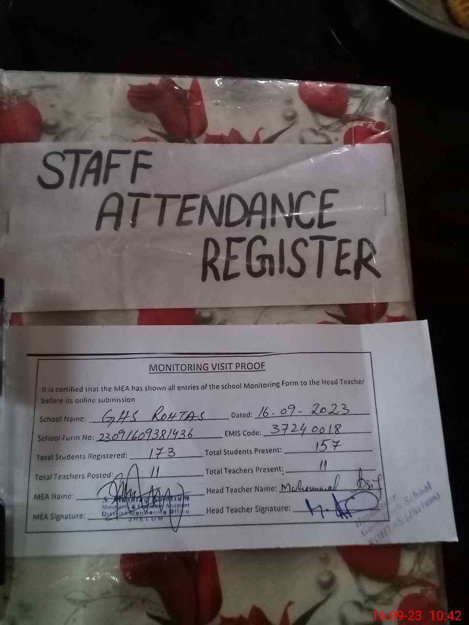 | EMIS Code: 37240018 | Name of School: GHS ROHTAS | |||