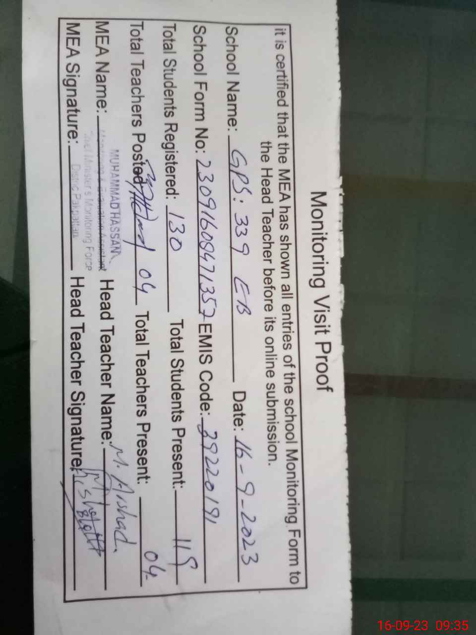 | EMIS Code: 39220191 | Name of School: GPS 339 EB | |||