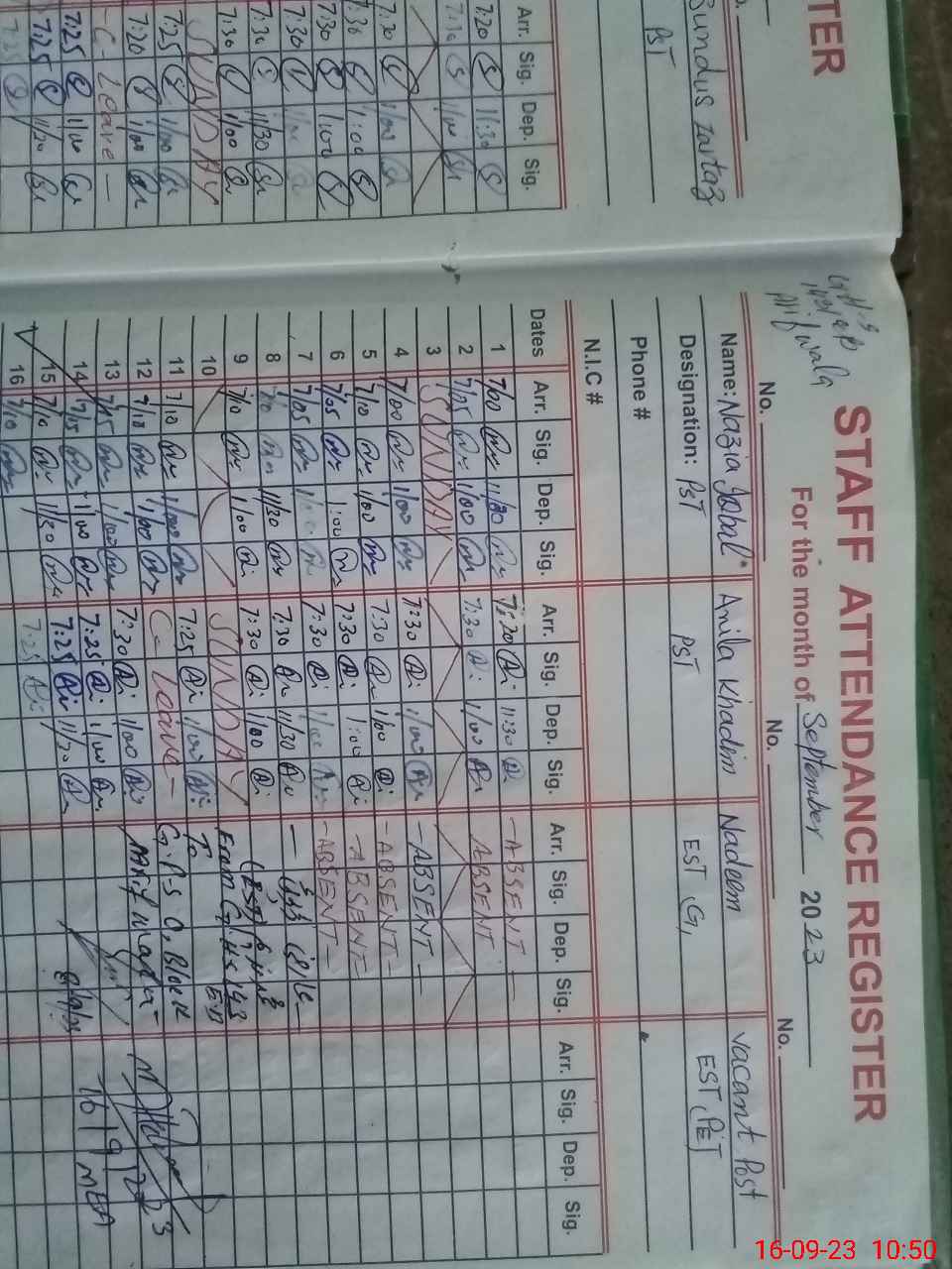 | Name: KA**** TA**** Designation: (School Headmaster's/Headmistress's) SST (SCI) Phone/Cell Number: 03**** |